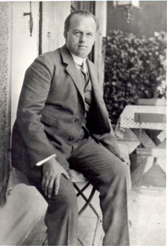1920, 12a, Anton Wildgans vor seinem Haus in Mödling