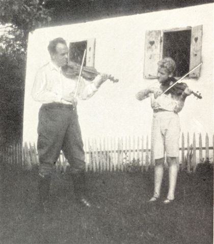 1927, 10, Anton Wildgans mit seinem Sohn Friedrich geigend