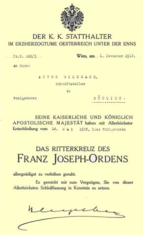 1918-05-31, 10, Verleihung des Kaiser-Franz-Joseph- Ordens an Anton Wildgans
