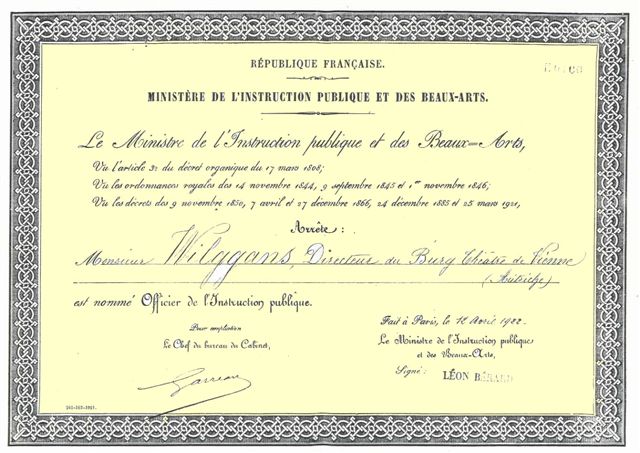 1922-04-12, Ministere d´Instruction publique, Auszeichnung aus Frankreich für Anton Wildgans
