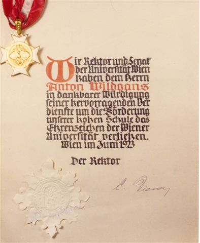 1923-06-12, 72, Ehrenzeichen Universität Wien für Anton Wildgans