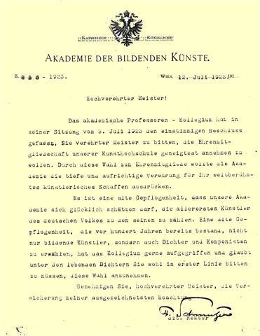 1923-06-12, 71, Ehrenzeichen Universität Wien für Anton Wildgans